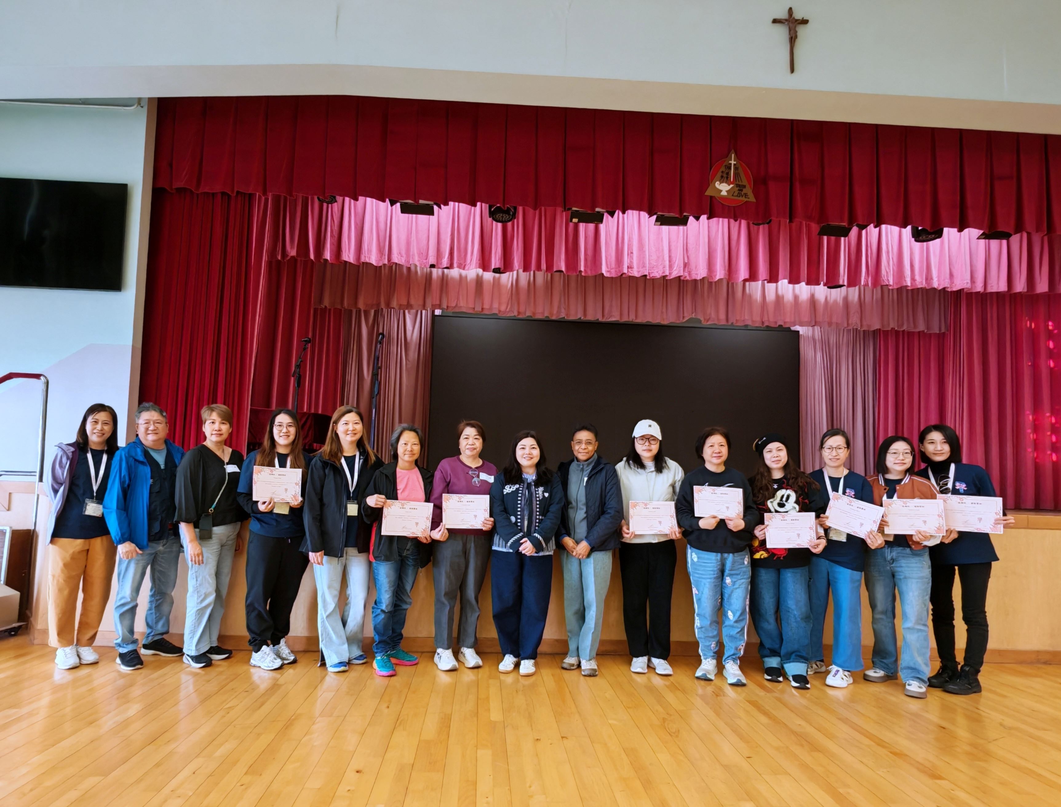 劉惠蘭修女、鄭豈蓮女士、湯慧儀女士、梁永安先生、 楊冠玲女士、廖葵芳女士、梁志芳女士、蔡振興先生、 李靜雯女士、何利鴻先生、李淑娥女士、方 藝女士、 江頌儀女士、余漢群女士 |